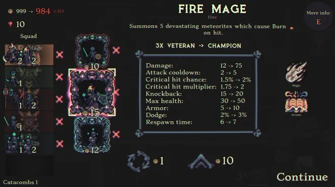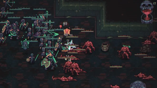 You can purchase a variety of unit types to build your squad throughout each run. Every unit has different special abilities, so you can create a horde with strong synergies. Buying multiple units of the same type merges them into stronger versions, until they eventually unlock a unique special ability. Loot found in the dungeon interacts with unit classes and tags to produce powerful benefits. Use resources to strategically reroll units and loot to craft the exact build you are looking for.